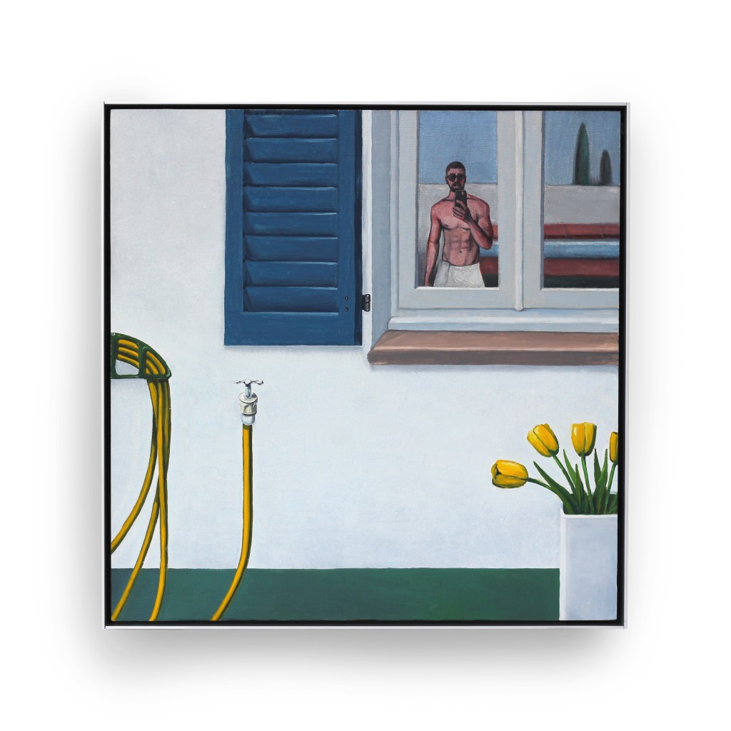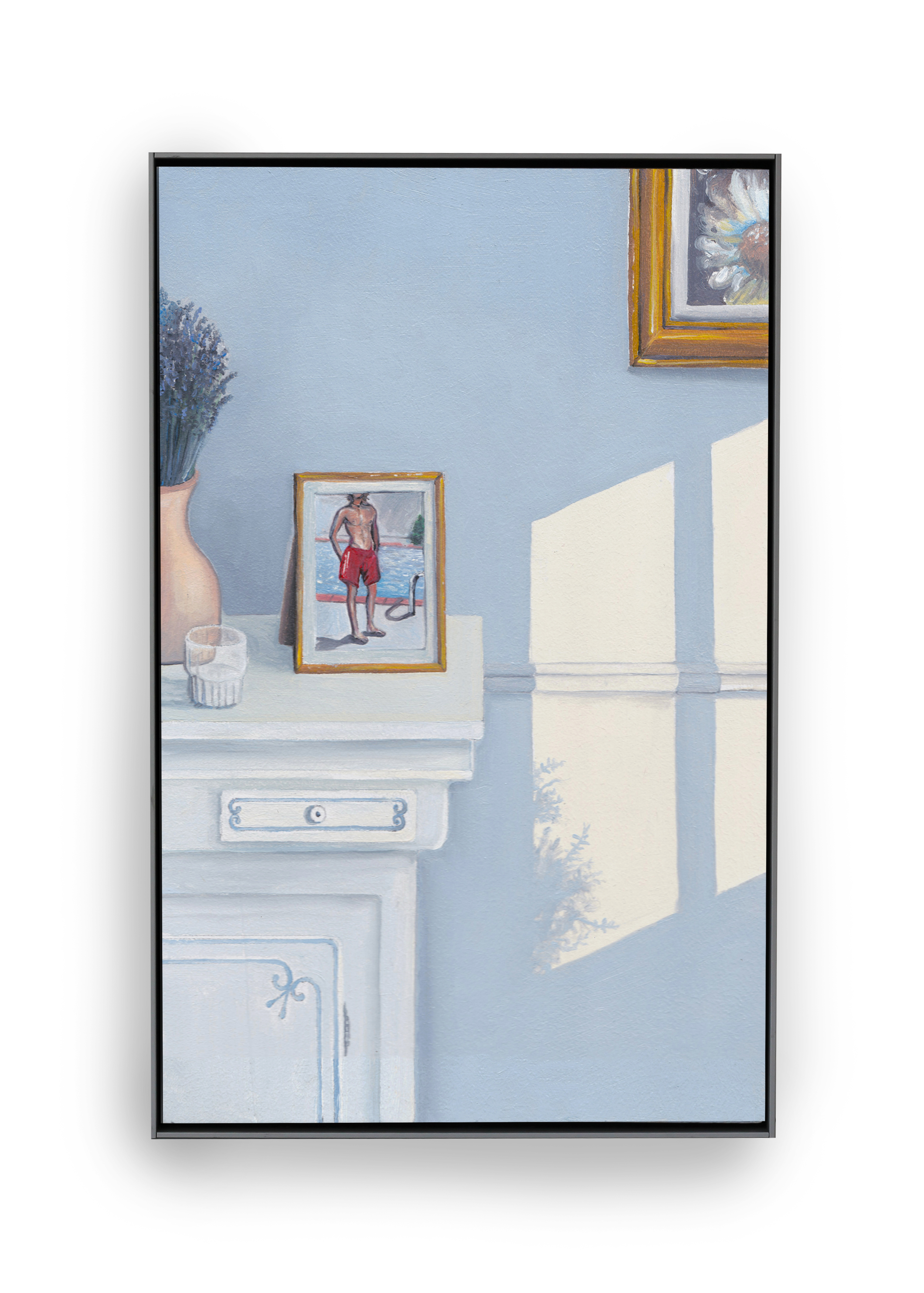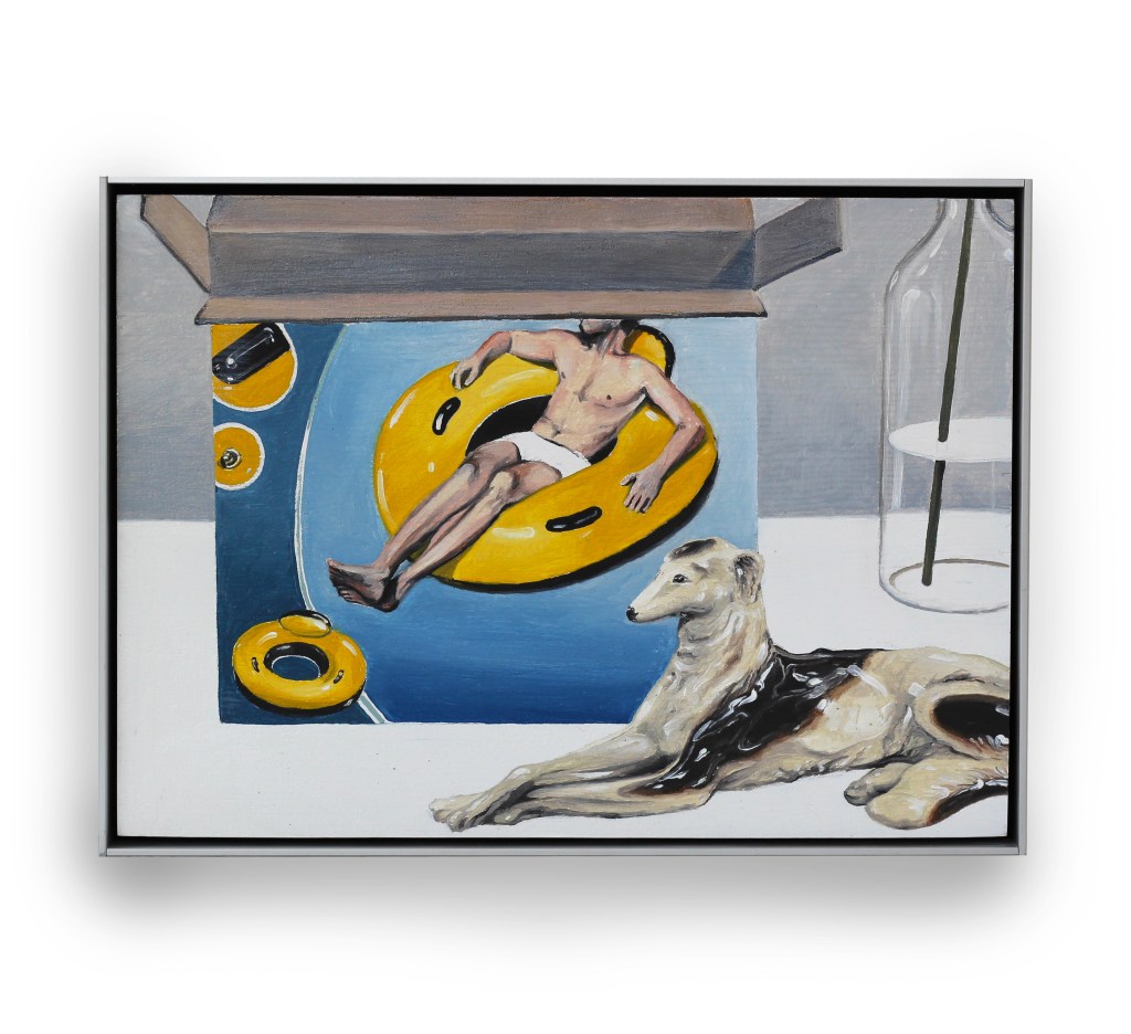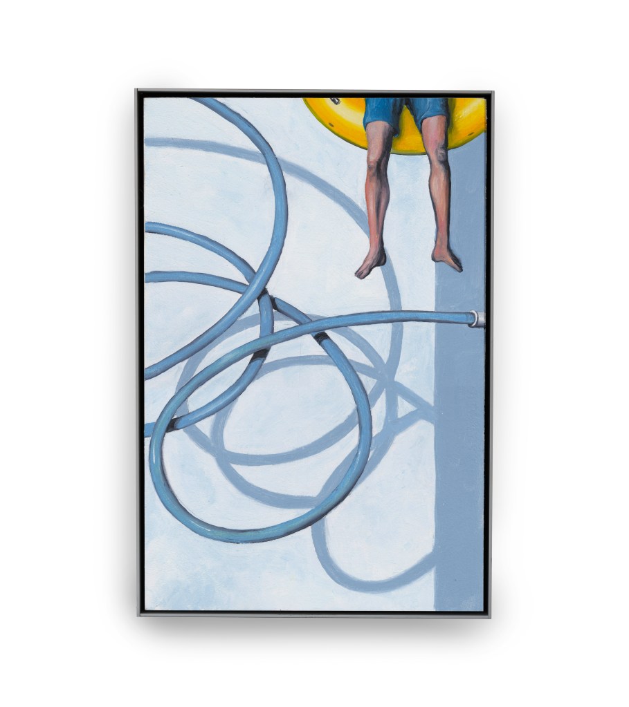 Sebastien à la piscine – 51×42 x3cm – huile sur bois 2024