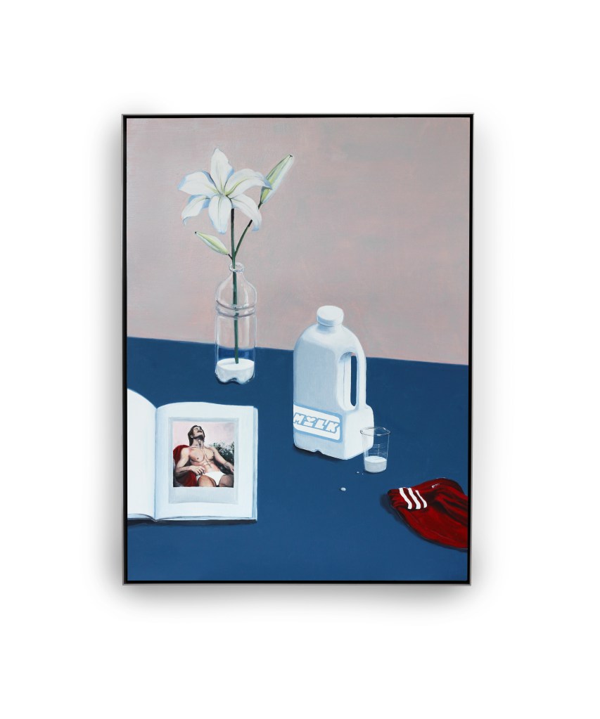À travers plusieurs thèmes qui me sont chers — le corps, l’Objet, la solitude, l’ennui, les fleurs — je questionne le lien entre la nature morte et le dynamisme du corps en mouvement. Cette confusion soulève des questions : le corps peut-il devenir objet ? Comment ces derniers dialoguent-ils entre eux ? Que nous disent-ils sur le temps qui passe ? Ces objets, fascinants et explorés sous tous les angles, démythifient le corps, qui cesse alors d’être le sujet principal. Il est confondu parmi les objets, un élément parmi d’autres dans la composition, il devient souvenir.