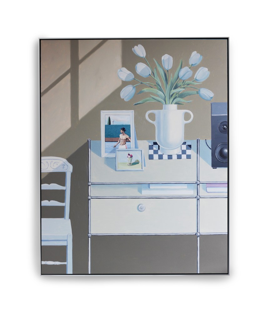 La nature morte agit comme un memento mori, un rappel de l’éphémère. Les fleurs, omniprésentes, apportent une douceur poétique tout en soulignant la fragilité et la mortalité de l’ensemble. À travers cette exploration, je montre comment notre esthétique évolue, comment l’Objet devient un marqueur de son époque, tout en évoquant que nos corps aussi subissent cette transformation.