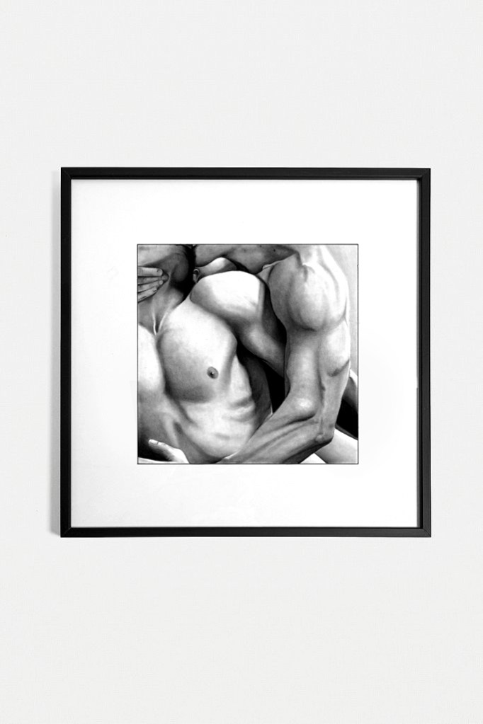 La série intitulée « Les garçons », produite entre 2018 et 2020, est une série de dessins basée sur la représentation du corps masculin. Ce travail est issu d’une vision de mes désirs, d’une interprétation plastique et sensuelle que je mène sur le corps. Je trouve l’inspiration de mon travail dans un univers en particulier : la statuaire grecque. Je m’efforce de représenter à travers mes dessins, le mouvement d’un corps, mais aussi l’expression des sentiments, la passion et le désir. Je cultive cette imaginaire de l’idéal issu de la statuaire, sa douceur mais aussi sa froideur : marbre blanc, lisse, immaculé, impénétrable et malgré tout si palpable. Je transforme ces garçons en statues, comme s’ils étaient figés dans le temps. J’aime cette idée de générer des images, désirables, érotiques captivantes et parfois séduisantes.